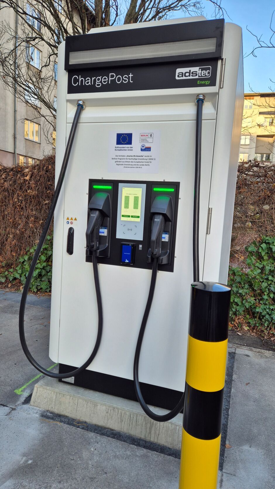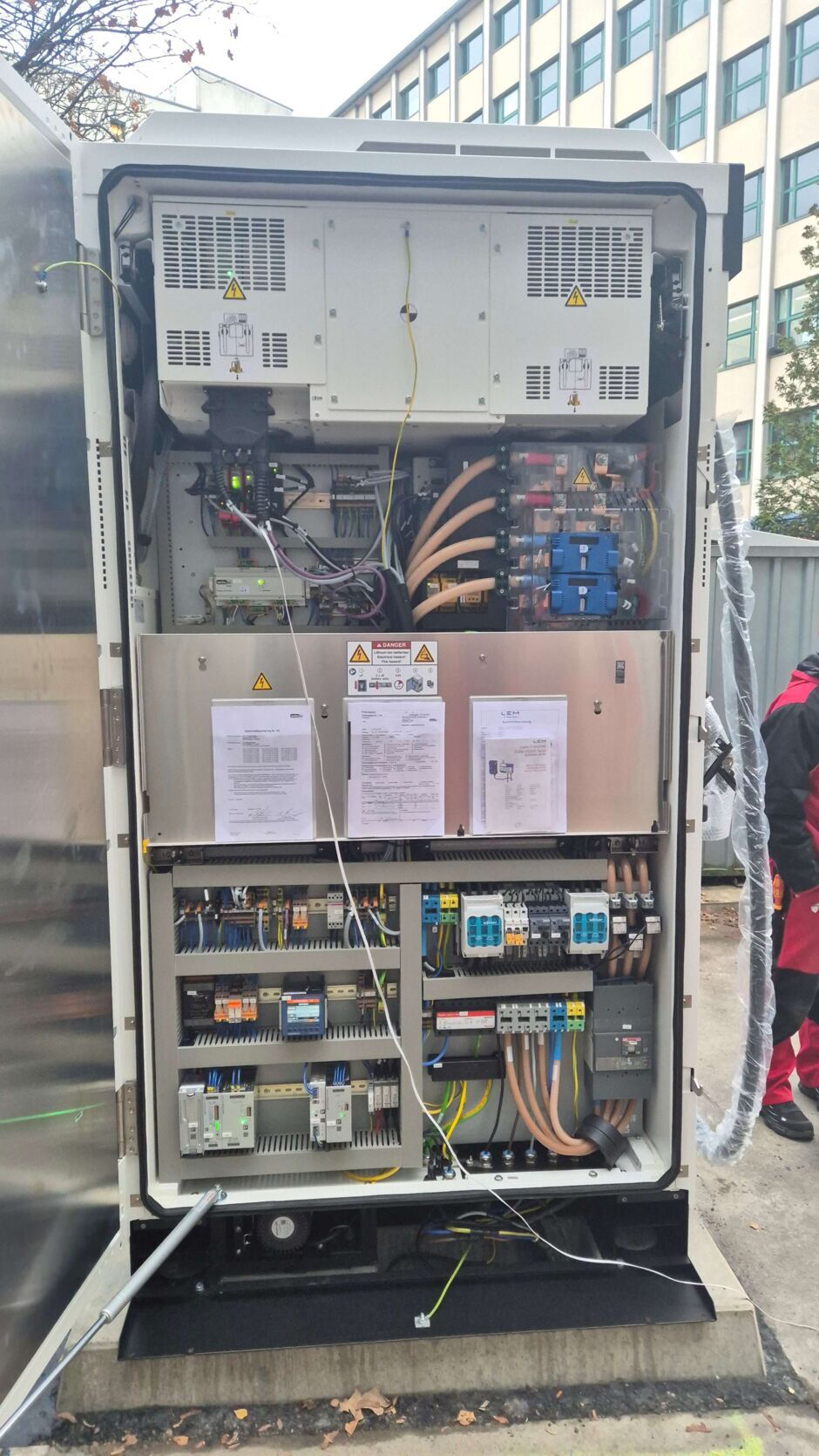 Bei der Wahl und Beschaffung der Ladestation mussten wir für uns komplett neue Wege bestreiten. Die Hauptfrage, die uns beschäftigt hat, war relativ komplex: Welche Ladesäulen auf dem Markt unterstützen von die uns gewünschte Performance, wie z. B. integrierter Speicher, Kompatibilität mit der smarten Steuerung bei der Rückspeisung des Energie ins Hausnetz, normative Vorgaben der Stromversorger bei der Netzrückspeisung etc. Nach dem sehr mühseligen Prozess der Ausschreibung konnten wir endlich den Auftrag vergeben, die Ladesäule wurde trotz Verzögerungen doch noch rechtzeitig fertiggestellt. Die erforderliche Parametrisierung der Lade- und Entladesteuerung hatte ebenfalls einige Tücken, da auf unsere neue Ladestation nicht die klassischen Einsatzbedingungen einer Ladeinfrastruktur warteten. Die Nutzung einer Ladestation für die Pufferung der Energie aus einer PV-Anlage und einem BHKW wurde bei unserem Ladesäulenhersteller bis jetzt nicht praktiziert.